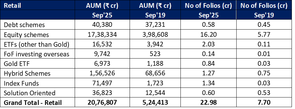 We have analyzed consolidated Asset Under Management (AUM) and folio data from Sep’19 to Sep’25. The results are not just encouraging; they are a testament to the hard work you, the distribution community, have put in over the last several years.