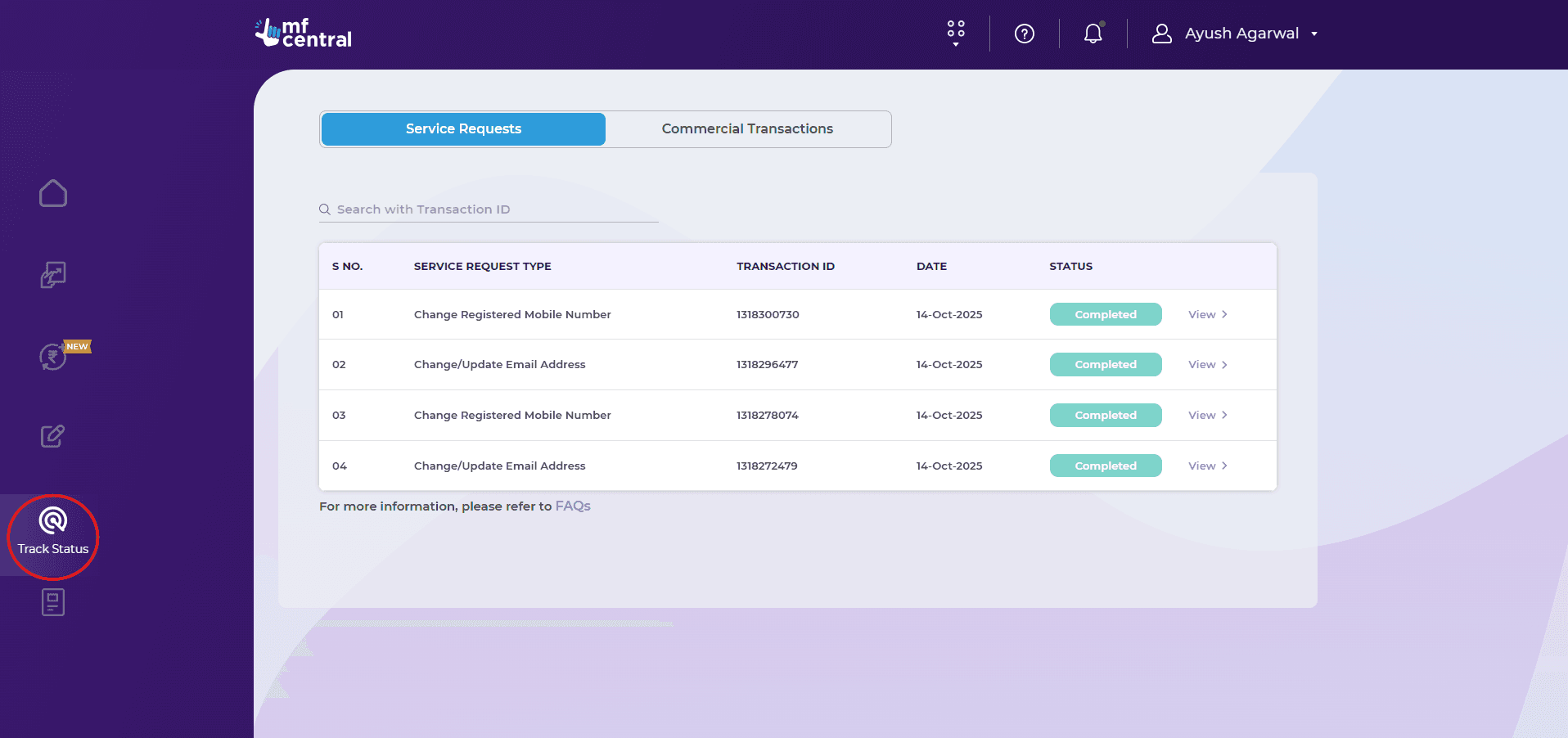 How to track change requests on MFCentral?