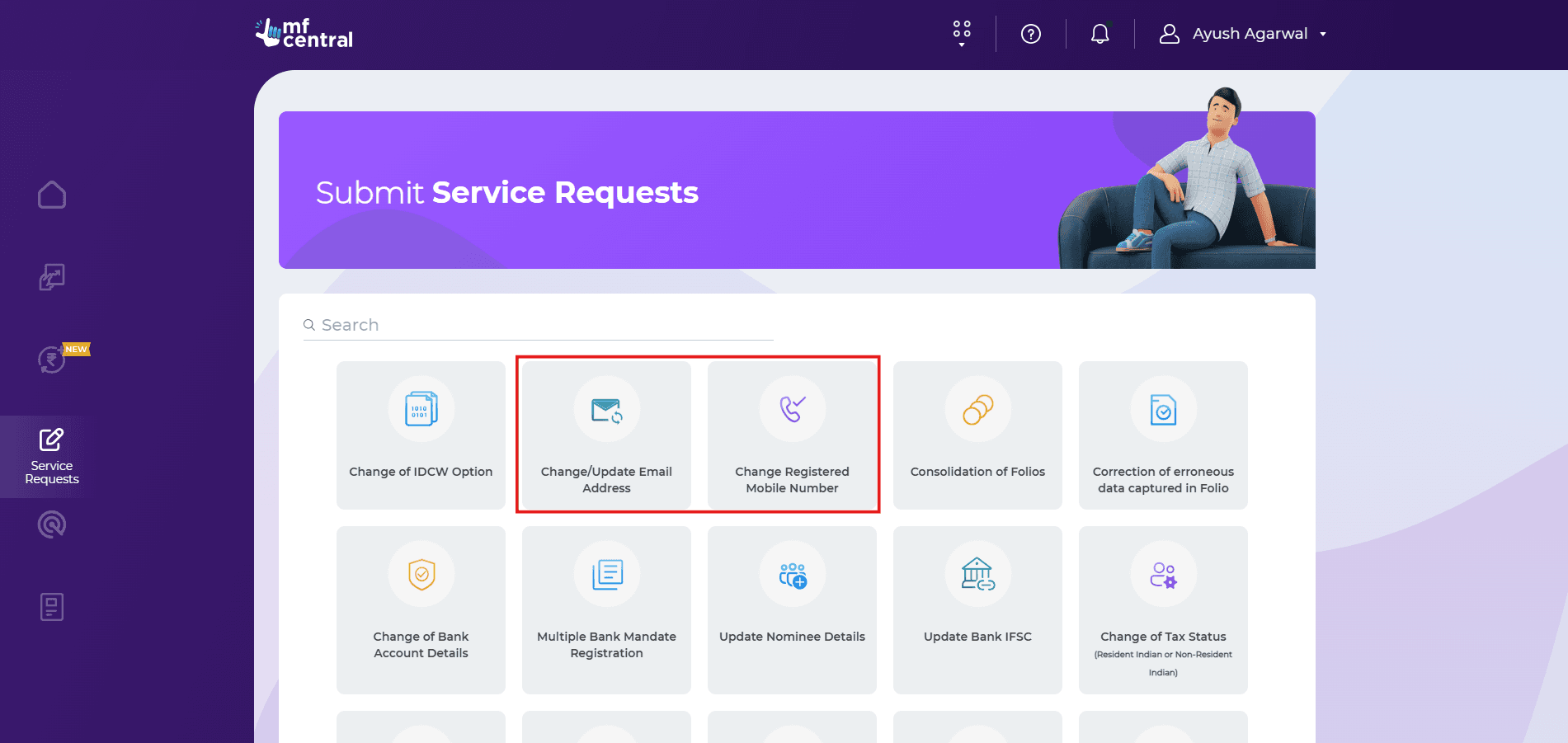 How to change mobile on MFCentral?